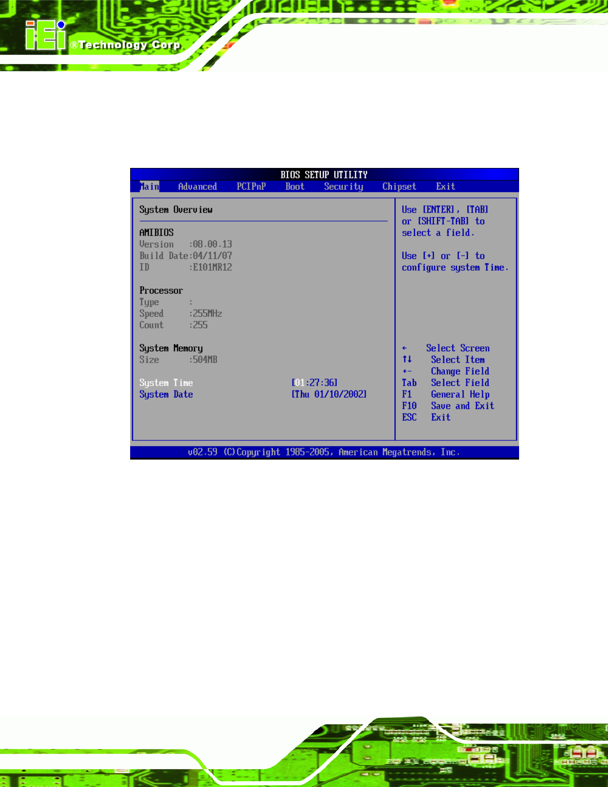 BIOS Menu 1: Main