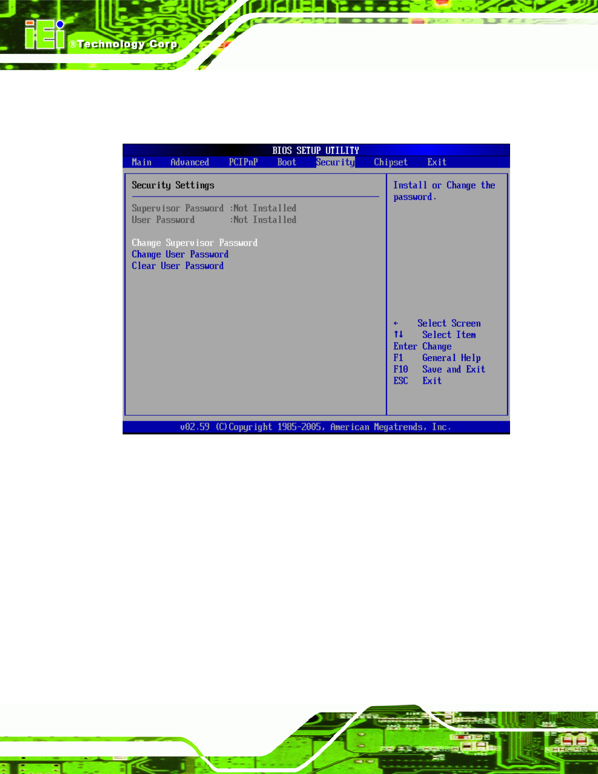 BIOS Menu 19: Security