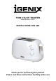 750W 2 SLICE TOASTER Model Number: IG3001 INSTRUCTIONS FOR USE Thank you for purchasing this product.