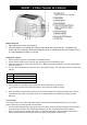 Reheating Toast This function allows you to reheat bread that has already been toasted by giving it a short burst of heat. • Leave the Timer Set Browning Control (5) at your usual setting. Press the bread carriage lever down and then press the Reheat button (4). The indicator light will light up to show the toaster is reheating the toast. Only unbuttered toast must be reheated. Toasting Tips • When toasting more than one slice of bread, use slices that are of a similar size, thickness and freshness.