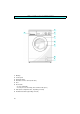 APPLIANCE AND ACCESSORIES 1 3 2 4 5 6 7 8 1. 2. 3. 4. 5. Worktop Control panel Detergent drawer After-Sales Service sticker (inside door) Door 6. Door handle - To open: pull handle - To lock: press the door firmly (the lock will click into place) 7. Filter (inside compartment door, depending on model) 8.