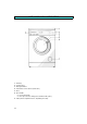 APPLIANCE AND ACCESSORIES 1. Worktop 2. Control panel 3. Detergent drawer 4. After-Sales Service sticker (inside door) 5. Door 6. Door handle - To open: pull handle - To lock: press the door firmly (the lock will click into place) 7. Filter (inside compartment door, depending on model).