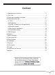 Content 1.Appearance and button................................................................... 2 2. First use ......................................................................................... 4 3.Equipment operation interface ........................................................9 4.Equipment basic set ......................................................................13 4.1 WIFI .........................................................................................13 4.2 Brightness......