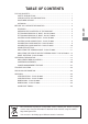 TABLE OF CONTENTS FOR YOUR SAFETY.............................................................................................. 1 SAFETY PRECAUTIONS ................................................................................ 1 SPECIAL NOTES ON LCD MONITORS.......................................................... 3 CUSTOMER SERVICE .................................................................................... 3 CLEANING..............................................................................