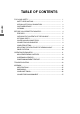 TABLE OF CONTENTS ENGLISH FOR YOUR SAFETY .............................................................................. 1 SAFETY PRECAUTIONS ................................................................. 1 SPECIAL NOTES ON LCD MONITORS ............................................. 3 CUSTOMER SERVICE ...................................................................... 3 CLEANING ....................................................................................... 3 BEFORE YOU OPERATE THE MONITOR ..