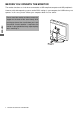BEFORE YOU OPERATE THE MONITOR The monitor functions as a hub when connected to a USB compliant computer and USB peripherals. However, with older operating systems and/or BIOS settings in your computer, the USB hub may not operate. In this case, please contact your computer dealer first for advice. Please stand the monitor and then remove the stopper on the back of the stand slowly while ENGLISH pushing top face of the stand before you install the monitor.