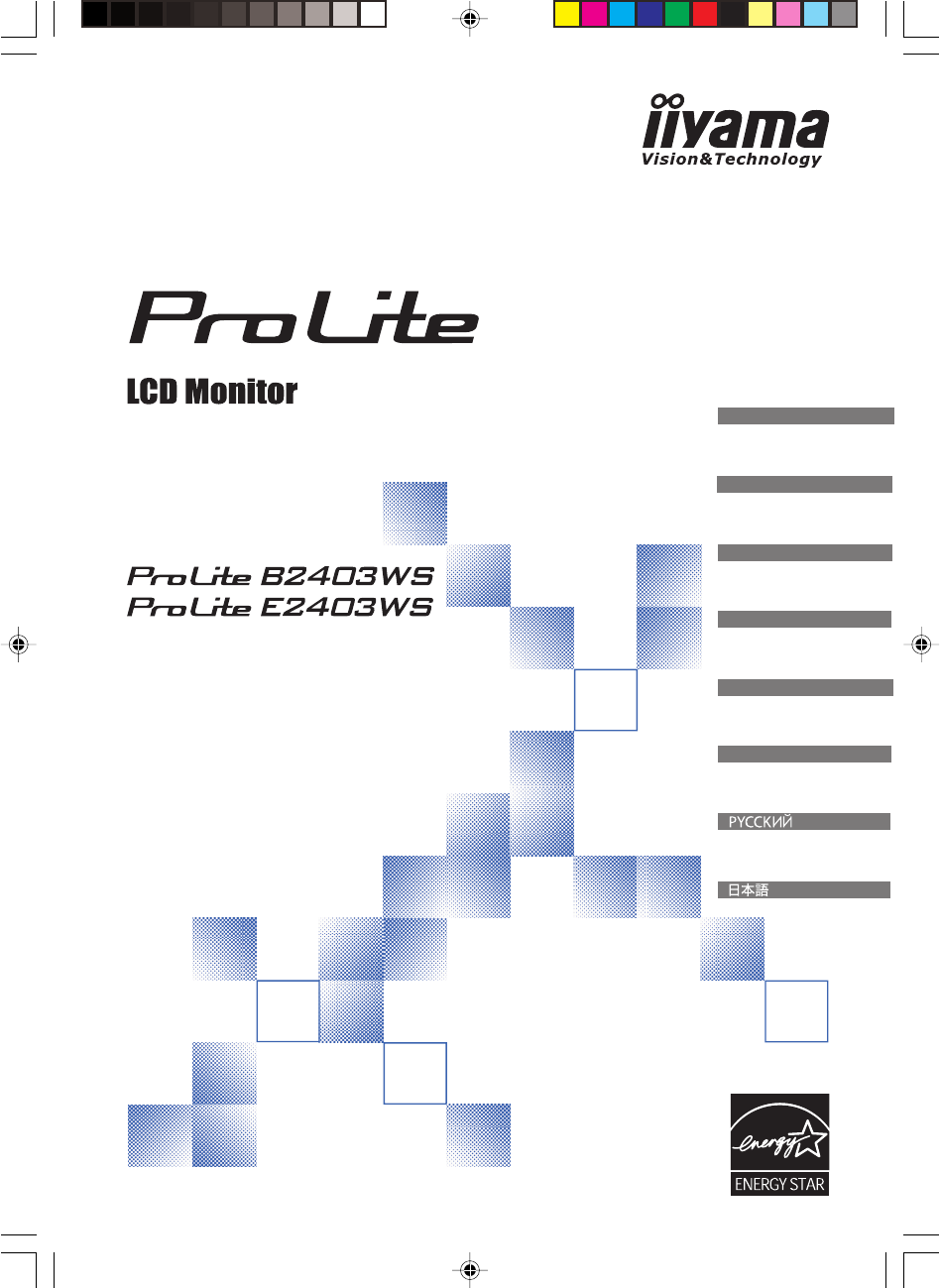 USER MANUAL ENGLISH DEUTSCH FRANCAIS NEDERLANDS Thank you very much for choosing the iiyama LCD monitor. We recommend that you take a few minutes to read carefully through this brief but comprehensive manual before installing and switching on the monitor. Please keep this manual in a safe place for your future reference. PLB_E2403WS-e-M021B01.