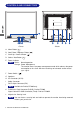 ENGLISH CONTROLS AND CONNECTORS FRONT PANEL CONTROL 7 6 5 8 1 2 3 4 9 10 11 12 A Menu Button ( 1 ) B Scroll Down / Brightness Button ( C Scroll Up / Contrast Button ( ) ) D Select / Auto Button ( 2 ) E Power Indicator NOTE Green: Normal operation Orange: Power Management The monitor enters into power management mode which reduces the power consumption to less than 2W when receiving no horizontal and/or vertical sync signal.