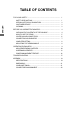 TABLE OF CONTENTS ENGLISH FOR YOUR SAFETY .............................................................................. 1 SAFETY PRECAUTIONS ................................................................. 1 SPECIAL NOTES ON LCD MONITORS ............................................. 3 CUSTOMER SERVICE ...................................................................... 3 CLEANING ....................................................................................... 3 BEFORE YOU OPERATE THE MONITOR ..
