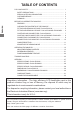 TABLE OF CONTENTS FOR YOUR SAFETY ..................................................................................... 1 SAFETY PRECAUTIONS ........................................................................ 1 SPECIAL NOTES ON LCD MONITORS .................................................... 3 CUSTOMER SERVICE ............................................................................. 3 CLEANING ..............................................................................................
