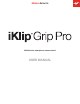English iKlip Grip Pro Thank you for purchasing iKlip Grip Pro. Your package contains: • iKlip Grip Pro • Wrist hand strap • Device holder • *Bluetooth shutter • Quick Start Guide • Registration Card 1x 1x 1x 1x iKlip Grip Pro is the next generation of IK’s well known iKlip Grip. It provides a handheld grip, mini-tripod, monopad, tripod adater and bluetooth shutter for any smartphone or phablet, in a conveniently portable package.