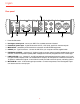 - English 11. USB LED - this LED illuminates when the unit is recognised by the computer to which it is connected. 12. MIDI IN/OUT LEDs - these LEDs illuminate when MIDI data is received from/transmitted to the MIDI port. 13. PRESET - this push-encoder allows you to browse between AmpliTube’s presets. This control can also be customized to send any MIDI CC to control other functions or other software. 14.