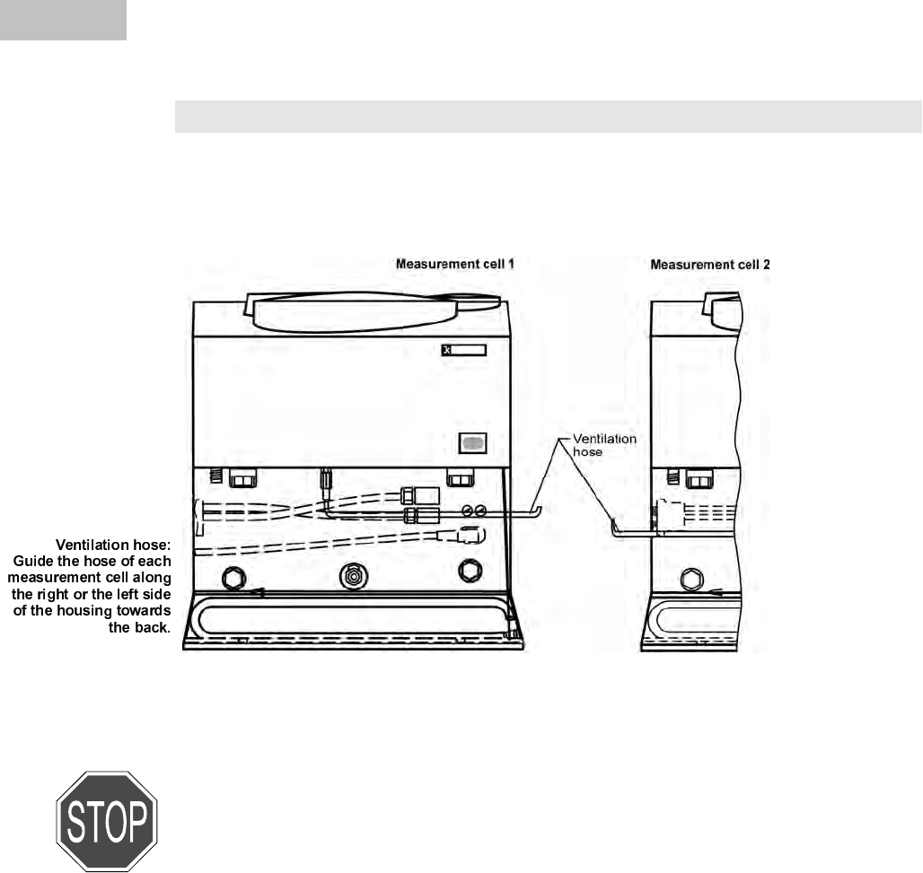 Open the front flaps of both measurement cells and install the ventilation hose ac-