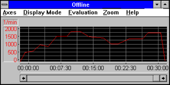 Two cursor lines, which can be moved via the time axis, are used to evaluate the curves.