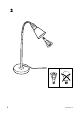 SLOVENŠČINA Zunanjega pregibnega kabla ali žice ni mogoče zamenjati; če se kabel poškoduje, zavrzi celoten izdelek. TÜRKÇE Bu aydınlatmanın harici esnek kablosu veya kordonu değiştirilemez; kordon zarar görürse aydınlatma imha edilmelidir. 中文 灯具电源线不可更换 ; 电源线损坏后, 灯 具应遗弃, 不可继续使用。 繁中 此照明燈外部的可彎曲電線無法更換;若電線遭到損 壞,照明燈即無法使用. 한국어 본 조명의 외부 신축성 케이블/코드는 교체가 불가 능합니다. 코드에 손상이 있을 경우에는 조명기구 를 폐기하세요.