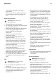 ENGLISH 5 Farm houses; staff kitchen areas in shops, offices and other working environments – By clients in hotels, motels, bed and breakfast and other residential type environments Keep ventilation openings, in the appliance enclosure or in the built-in structure, clear of obstruction. Do not use mechanical devices or other means to accelerate the defrosting process, other than those recommended by the manufacturer. Do not damage the refrigerant circuit.