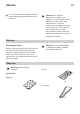 ENGLISH • • • • • • • • • • caused by excessive lime in the water supply, damage caused by abnormal environmental conditions. Consumable parts including batteries and lamps. Non-functional and decorative parts which do not affect normal use of the appliance, including any scratches and possible color differences. Accidental damage caused by foreign objects or substances and cleaning or unblocking of filters, drainage systems or soap drawers.