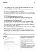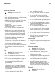 ENGLISH A 8 B C D E • A - green and yellow: Earth • C - brown: Live • D - blue: Neutral As the colours of the wires in the mains lead of this appliance may not correspond with the coloured markings identifying the terminals in your plug, proceed as follows: 1. Connect the wire coloured green and yellow to the terminal marked either with the letter “E“ or by the earth symbol or coloured green and yellow. 2.