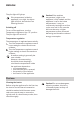 ENGLISH No incandescent bulbs are allowed. 3. Reassemble the lamp cover. 4. Connect the plug to the mains socket. 5. Open the door. Make sure that the light comes on. 17 2. If necessary, adjust the door. Refer to the assembly instructions. 3. If necessary, replace the defective door gaskets. Contact the Authorised Service Centre. Closing the door 1. Clean the door gaskets.
