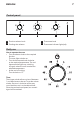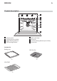 ENGLISH 6 Product description 1 2 3 4 5 6 7 8 1 2 3 4 Control panel Cooling fan (not visible) Upper heating element Grill heating element 5 6 7 8 Rear oven lamp Oven fan Circular heating element (not visible) Oven door Accessories Baking tray Grill Pan Set 1x Wire Shelf 1x 1x
