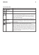 ENGLISH 13 Technical data Dimensions Width 595 Height 595 Depth 564 Usable volume l 53 Area of largest baking sheet (net surface) cm2 1200 Circular heating element W 2000 Grill W 2450 Cooling fan W 21 Oven lamp W 25 Total rating W 2300 Number of functions 3 Energy consumption kWh 0.79 The technical informations are situated in the rating plate inside the appliance.