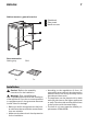 ENGLISH 7 Cabinet structure- general overview 1 1 Splashback 2 Side panels 3 Metal structure 2 3 Oven accessories Baking tray 1x Grid 1x Installation Caution! Refer to the assembly instructions for the installation. Warning! Only a qualified and competent person must do the installation of the appliance. If you do not contact qualified or competent person, the guarantee becomes invalid if there is damage.