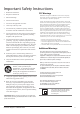 Important Safety Instructions 1. Read these Instructions. 2. Keep these Instructions. 3. Heed all Warnings. 4. Follow all instructions. 5. Do not use this apparatus near water. 6. Clean only with a dry cloth. 7. Do not block any ventilation openings. Install in accordance with the manufacturer’s instructions. 8. Do not install near any heat sources such as radiators, heat registers, stoves, or other apparatus (including amplifiers) that produce heat. 9.