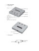 VI. Specification Model USB Mini Target 2 Operation Standalone Support media USB1.1 / USB2.0 SD / SDHC / Micro SD / MMC / Mini SD / CF (by USB multimedia card reader) Display 2 x 16 Bright LCD Display Control Button 4 Buttons ( Forward , Backward, OK, ESC) LED Green/Red LED on Each Slot Temperature Humidity Working 5°C~45°C Storage ‐20°C~85°C working 20%~80% Storage 5%~95% Power Supply DC +5V, 2A (Adapter) Copy mode Full Copy, Quick Copy Check function Device Info.