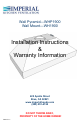 Wall Pyramid—WHP1900 Wall Mount—WH1900 Installation Instructions & Warranty Information 425 Apollo Street Brea, CA 92821 www.imperialhoods.com (800) 851-4192 DO NOT THROW AWAY, PROPERTY OF THE HOME OWNER! WALL/7.