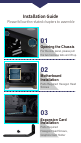 Installation Guide Please follow the related chapters to assemble 01 Opening the Chassis For the side panel, please pull the two tool-less tabs and lift up.