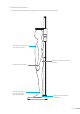2. Upper section ❶ Stand (upper): Upper part of the equipment Stand. ❷ Measurement tape: Used to adjust the footplate to be level for accurate measurements. ❸ Stand (lower): Lower part of the equipment Stand. ❶ ❷ ❸ 3. Lower section ❶ Stand insertion hole: The Stand is inserted here for assembly with the footplate. ❷ Footplate: The examinee steps on the footplate when having height measured. ❸ Leveling screws: Used to adjust the footplate to be level for accurate measurements.