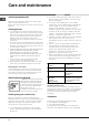 Care and maintenance GB Switching the appliance off Disconnect your appliance from the electricity supply before carrying out any work on it. Never use steam cleaners or pressure cleaners on the appliance. Cleaning the oven The stainless steel or enamel-coated external parts and the rubber seals may be cleaned using a sponge that has been soaked in lukewarm water and neutral soap. Use specialised products for the removal of stubborn stains. After cleaning, rinse and dry thoroughly.