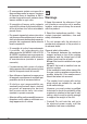 • W pomieszczeniu należy zapewnić odpowiednią wentylację, jeśli okap kuchenny jest używany równocześnie z innymi urządzeniami na gaz lub inne paliwa. • Nie korzystać z okapu bez prawidłowo zamontowanych lamp, ani też nie pozostawiać go w takim stanie w związku z możliwym niebezpieczeństwem porażenia prądem elektrycznym. • Powietrze zasysane przez okap nie może być odprowadzane do przewodu wylotowego spalin wytworzonych przez urządzenia gazowe lub pracujące na innych paliwach.