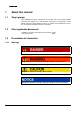 1.3.2 Text markings Marking Meaning Requirement for execution of an action Tool or aid for an action ► Instruction 1, 2, 3, ...