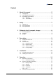 Content 1 About this manual . . . . . . . . . . . . . . . . . . . . . . . . . . . . . . 5 1.1 1.2 1.3 2 Safety . . . . . . . . . . . . . . . . . . . . . . . . . . . . . . . . . . . . . . . . . 7 2.1 2.2 2.3 3 Construction of the unit . . . . . . . . . . . . . . . . . . . . . . . . . . . . . . . . . . . . . 9 Function . . . . . . . . . . . . . . . . . . . . . . . . . . . . . . . . . . . . . . . . . . . . . . . 10 Technical data . . . . . . . . . . . . . . . . . . . . . . . . . . . . . . . . . . . . . .