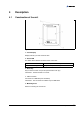 4 Description 4.1 Construction of the unit Fig: 1 Front view 1 - Touch display Display that lets you read and enter data 2 - Status LED The Status LED indicates the status of the control unit. Status LED illuminated Status LED flashing Control unit operates normally Display is set to power saving mode 3 - Reset key Key to rest the control unit (can be operated with touch pin) Information The MS module is not reset.