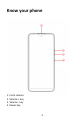 Know your phone ① 1. Front camera 2. Volume + key 3. Volume - key 4.