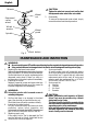 English 9. Use only properly rated depressed center wheels. Use only depressed center wheels rated at 13700 RPM for G10SR3, 13,000 RPM for G12SR3 or more. Using a depressed center wheel rated less can lead to wheel disintegration during operation and cause serious bodily injury. 10. Check the push button. Make sure that the push button is disengaged by pushing push button two or three times before turning on the grinder. (Fig. 5) GRINDER OPERATION 1.
