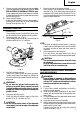 Français ENTRETIEN ET INSPECTION AVERTISSEMENT: 䢇 S’assurer de mettre l’interrupteur d’alimentation sur la position OFF et de déconnecter la fiche de la prise secteur avant l’entretien et l’inspection de la meuleuse à disque. 䢇 L’utilisation d’une meule fissurée, déformée ou endommagée risque de provoquer une rupture de la meule et d’entraîner la mort ou des blessures graves. 1. 2.