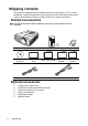Table of contents Introduction.................. 3 Projector features........................... 3 Shipping contents .......................... 4 Projector exterior view ................... 5 Controls and functions ................... 6 Positioning your projector ....................... 9 Hiding the image.......................... 40 Operating in a high altitude environment ................................. 40 Adjusting the sound ..................... 41 Personalizing the projector menu display...........