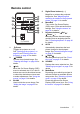 Remote control 5. 6 1 7 2 8 3 9 4 10 6. 11 7 7. 5 1. 2. 3. 4. 8. Power Toggles the projector on or off. See "Starting up the projector" on page 22 and "Shutting down the projector" on page 42 for details. 9. FREEZE Freezes the projected image. See "Freezing the image" on page 39 for 10. details. Left When the On-Screen Display (OSD) menu is activated, the #3, #7 and #9 11. buttons are used as directional arrows to select the desired menu items and to make adjustments.