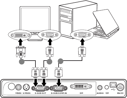 screen, you can connect the D-SUB OUT signal output socket on the projector to