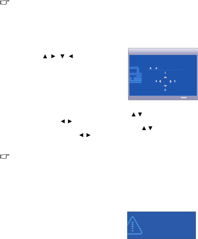 Once a password has been set and the power on lock is activated, the projector cannot be