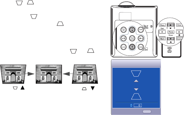 either the top or bottom. It occurs when the projector is not perpendicular to the