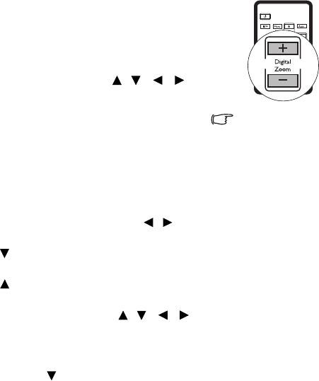 1. Press Digital Zoom +/- to display the Zoom