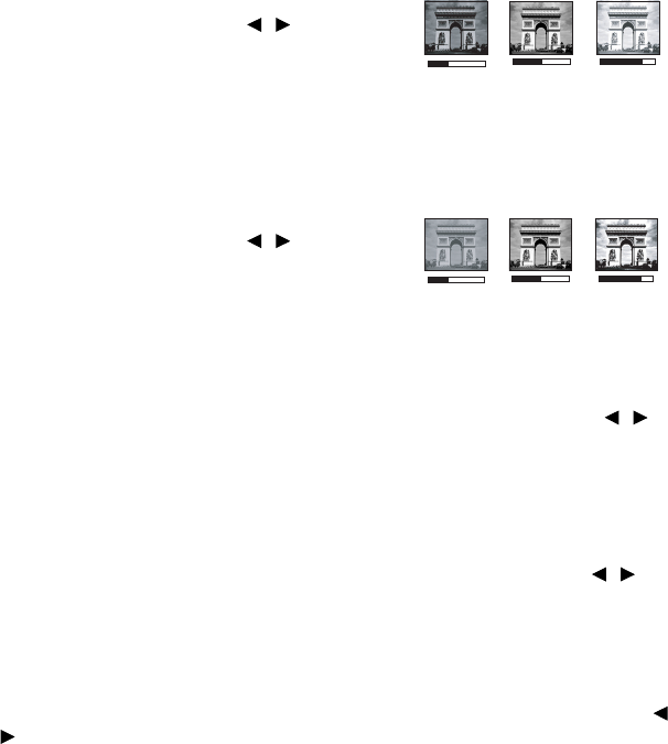 Lower setting produces less saturated colors; setting to the minimum value makes