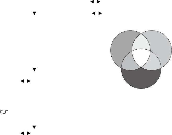 4. Press to highlight Hue and press / to select its range. Increase in the