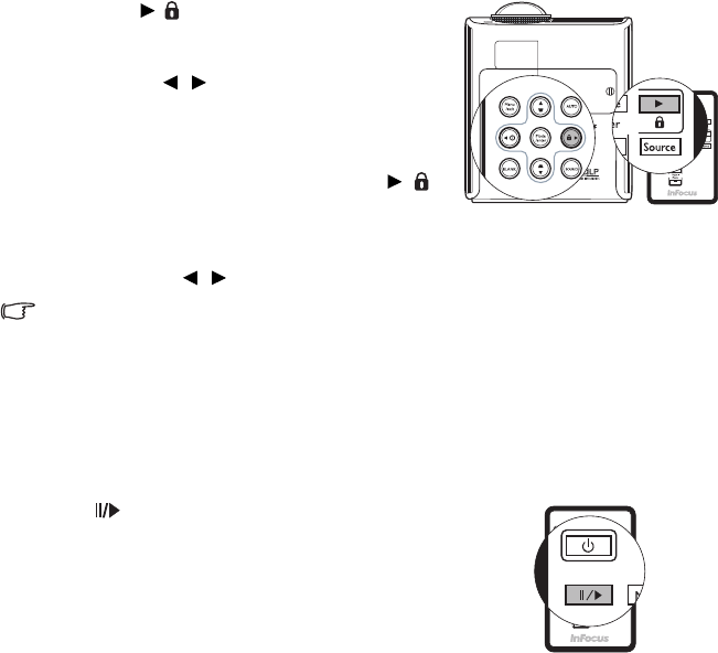 1. Press / on the projector or remote