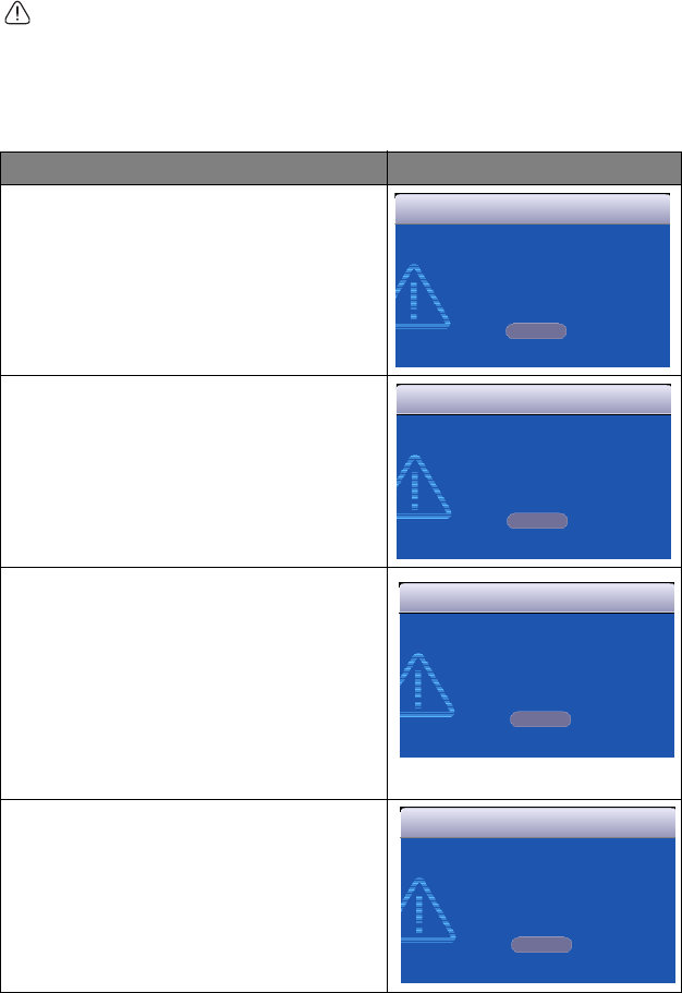 The following Lamp warning displays will remind you to change the lamp.