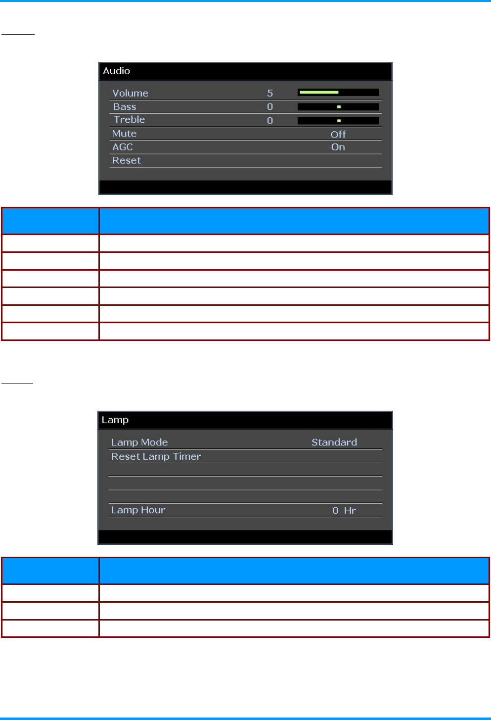 Lamp Hour  Displays the number of hours the lamp has been in use.